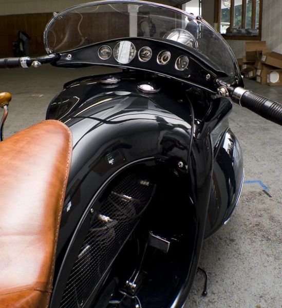 Владелец Фрэнк Уэстфолл довел мотоцикл до совершенства, но сделал несколько дополнительных модификаций. В отличие от восстановления заводской двухцветной отделки, он решил пойти на более изящную монохромную покраску, которую он сделал самостоятельно. Одной из самых ярких особенностей этого дизайна, безусловно, является округлая передняя часть, а также широкие сиденья и панель приборов, почти напоминающие винтажный автомобиль. Сиденье было явно сконструировано с учетом комфорта, и это совершенно другая концепция по сравнению со многими более поздними конструкциями мотоциклов, которые всегда были нацелены на уменьшение веса.