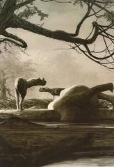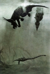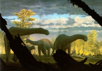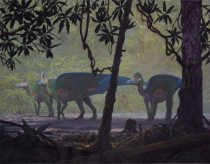 Дуглас «Дуг» Хендерсон, родившийся в 1949 году, обучался, а затем работал в качестве медбрата, прежде чем начал рисовать в 1977 году, как самоучка-пейзажист. Он открылся своему увлечению доисторическими временами и динозавры «просто вошли» в его картины. Раннее сотрудничество с палеонтологом Джеком Хорнером помогло Хендерсону стать одним из самых известных в мире палеохудожников.