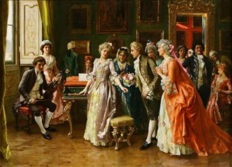 Федерико Андреотти (Флоренция, 6 марта, 1847 — 1930) — итальянский художник. Первоначально он учился с Angiolo Tricca и Стефано Усси в флорентийской Академии художеств. На конкурсе, он выиграл стипендию и в конечном счете получил назначение на должность профессора в Академии. Он был известным, как живописец в Риме, Флоренции и других городах. Он рисовал реалистические жанровые и аристократические сцены, часто в одежде восемнадцатого века. Сложные одежды того периода и показная атмосфера дают повод называть его картины Возрождением Рококо.