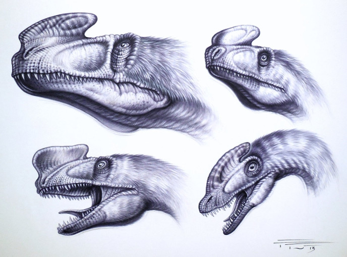 На рисунке ниже головы нескольких процератозавридов от итальянского художника динозавров Фабио Пастори. Слева направо: синотиранн (Sinotyrannus), килеск, процератозавр (Proceratosaurus) и гуаньлун (Guanlong).