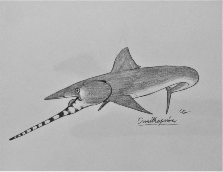 Род Ornithoprion из среднего карбона Индианы — мелкая рыба (череп не более 10-15 см длиной).