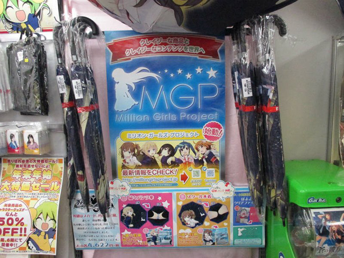 Million Girls Project производит продукты, которые продвигают идею «сумасшедшей Японии.» Он также предупреждает, что: «этот зонт вызовет интенсивное чувство стыда у пользователя», и что «использование автомобильных дорог общего пользования будет на свой страх и риск».
