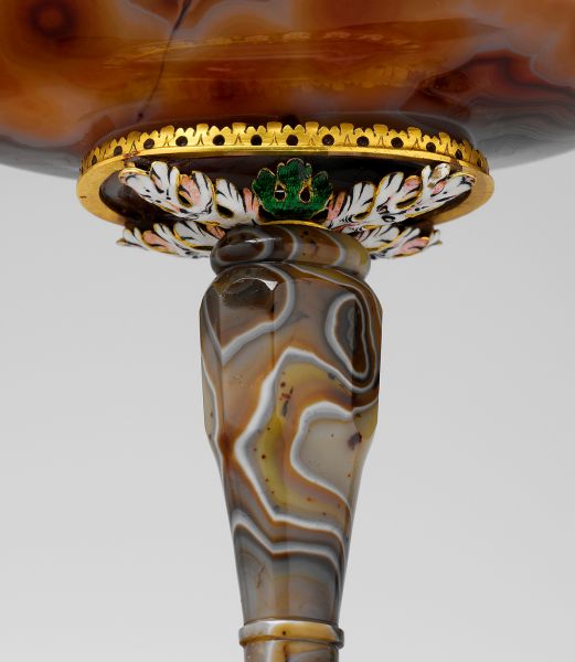 Византийская чаша из сардоникса (датируется около 1000 года). Приобретена Людовиком XIV и оснащена инкрустированными золотом ножкой и основанием (около 1660 года).